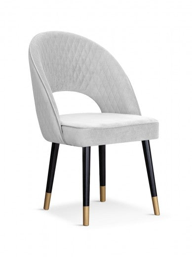 Chaise rembourrée avec tissu et pieds en métal Velours Ponte Argent / Noir / Or, l56xA63xH89 cm