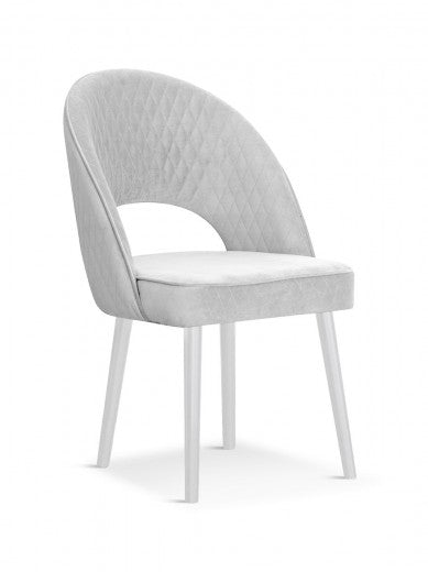 Chaise rembourrée avec tissu et pieds en bois Velours Ponte Argent / Blanc, l56xA63xH89 cm