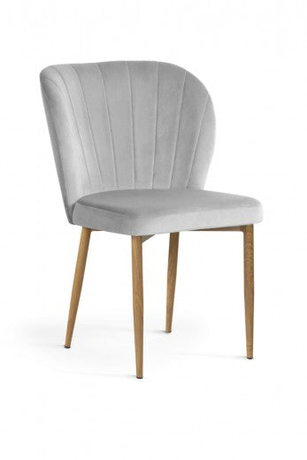 Chaise rembourrée avec tissu et pieds en métal Shelly Velvet d'argent / Chêne, l58xA63xH86 cm