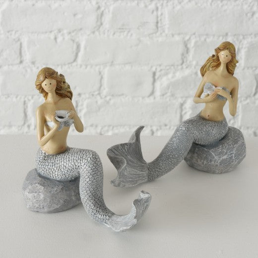 Décoration Sirène Polyrésine Marron/Gris, Motifs Assortis, l20xA9xH15 cm