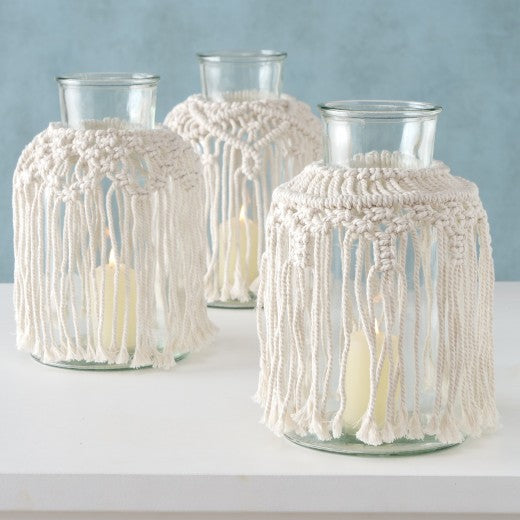 Vase décoratif en verre crème Makramee, Modèles assortis, Ø18xH30 cm