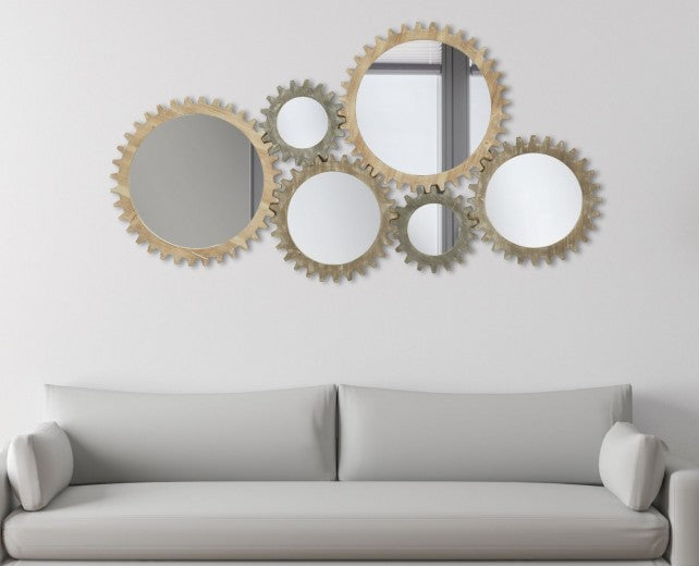 Décoration murale avec miroir, en MDF Ingranaggio Natural, l137xA3xH73,5 cm