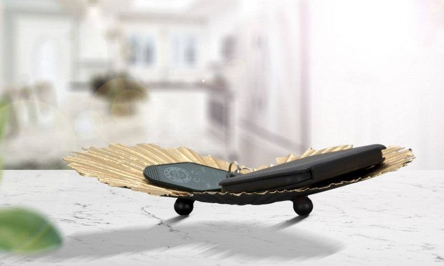 Assiette décorative en métal Long Leaf Doré, L59xl16xH5 cm