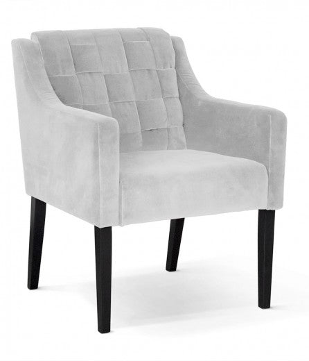 Fauteuil fixe tapissé de tissu, avec pieds en bois Zara Argent / Blanc, l60xA66xH85 cm