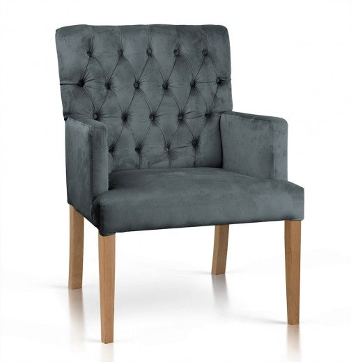 Fauteuil fixe tapissé de tissu, avec pieds en bois Zara Gris / Chêne, l60xA66xH85 cm