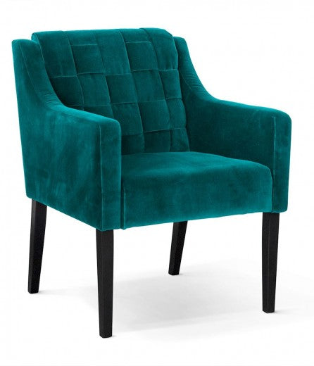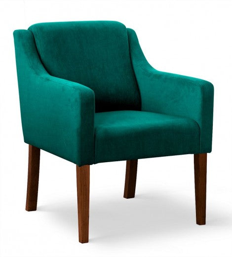 Fauteuil fixe tapissé de tissu et pieds en bois Milo Velours Turquoise / Noyer, l68xA66xH85 cm