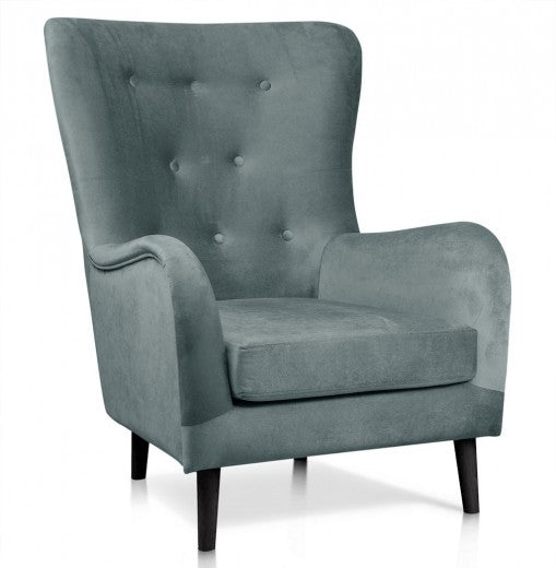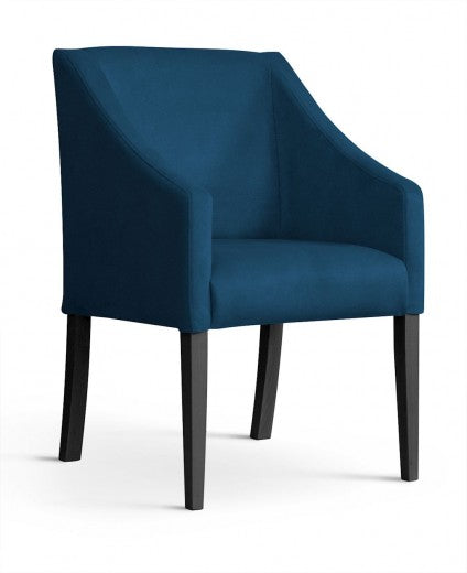 Fauteuil fixe rembourré avec tissu et pieds en bois Velours Capri Bleu / Noir, l58xA60xH89 cm