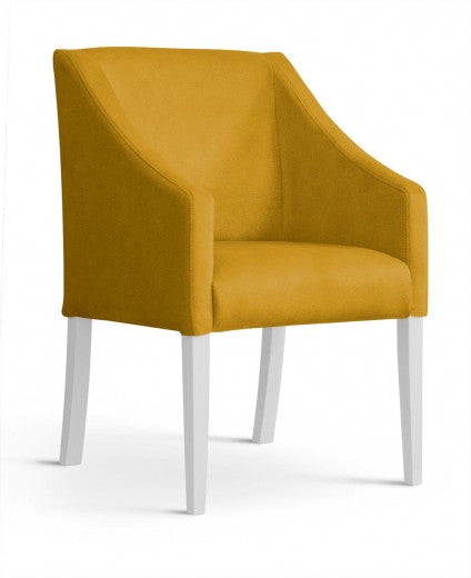 Fauteuil fixe rembourré avec tissu et pieds en bois Capri Velvet Mustariu / Blanc, l58xA60xH89 cm
