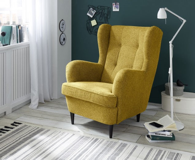 Fauteuil fixe rembourré en tissu, avec pieds en bois Grand Honey / Noir, l58xA60xH89 cm