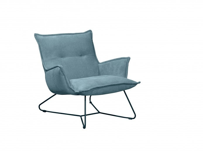 Fauteuil fixe tapissé de tissu et pieds en métal, Victorio 2 Bleu, l82xA86xH76 cm