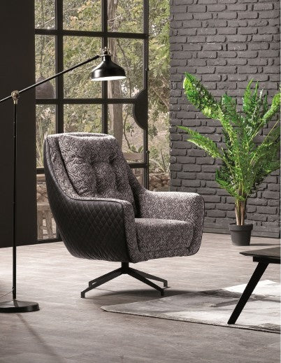 Fauteuil fixe rembourré avec tissu et pieds en bois, Oskard Gris Foncé, l78xA98xH102 cm