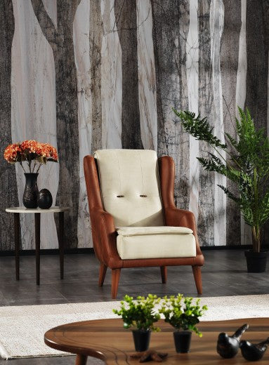 Fauteuil fixe rembourré en tissu Urla Crème / Marron K1, l72xA98xH100 cm