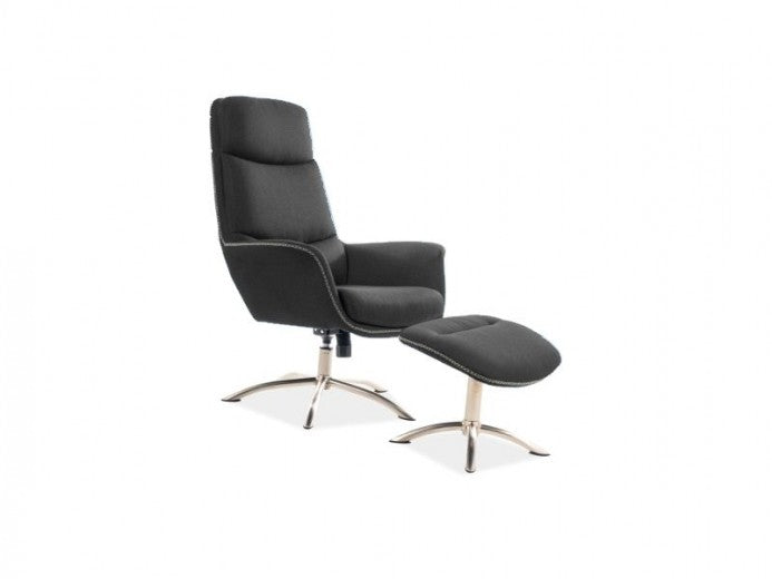 Fauteuil relax garni de tissu + Tabouret Regan Gris, l75xA80xH104 cm