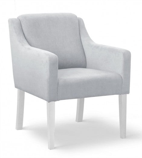 Fauteuil fixe tapissé de tissu et pieds en bois Velours Milo Argent / Blanc, l68xA66xH85 cm