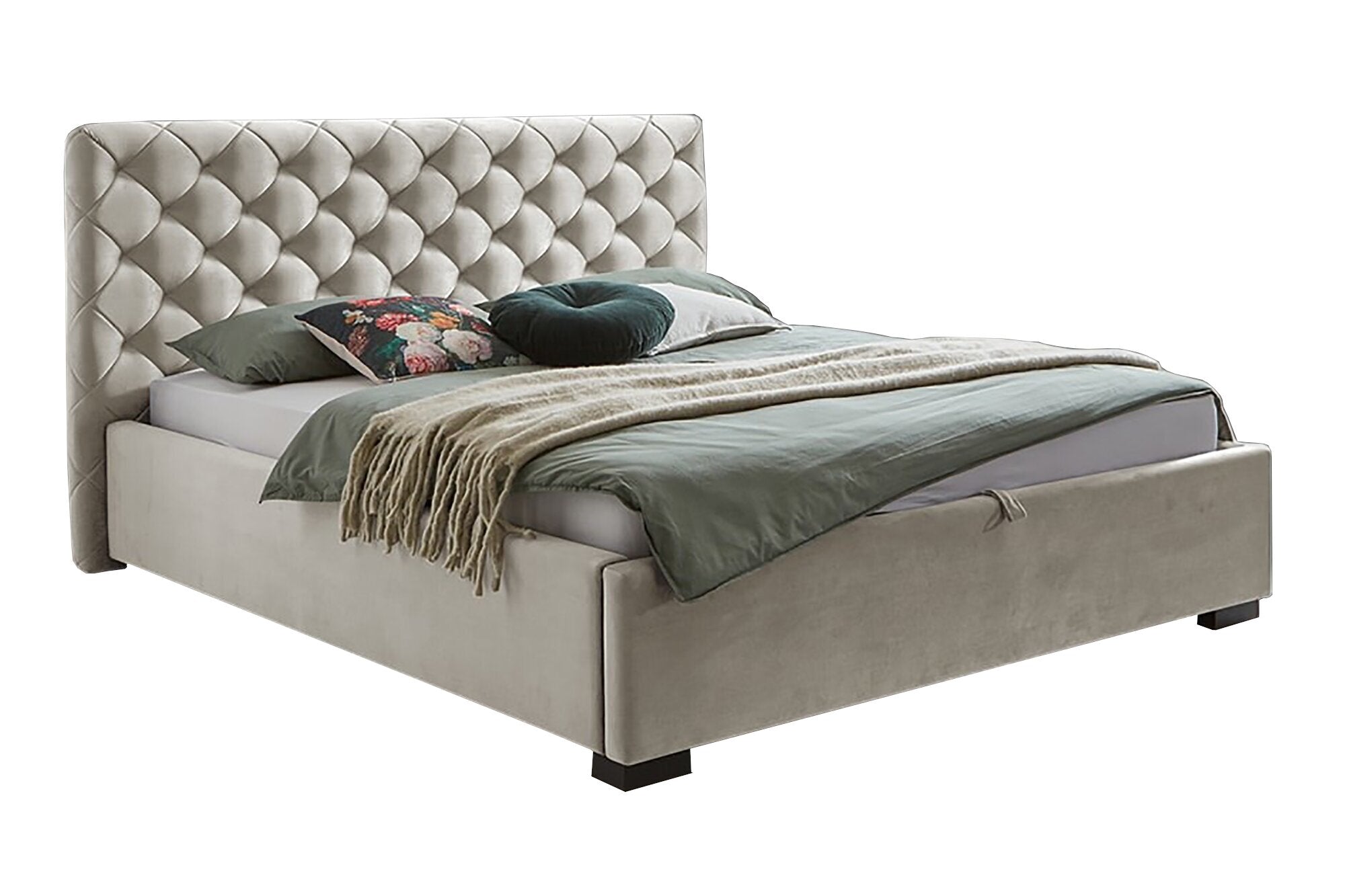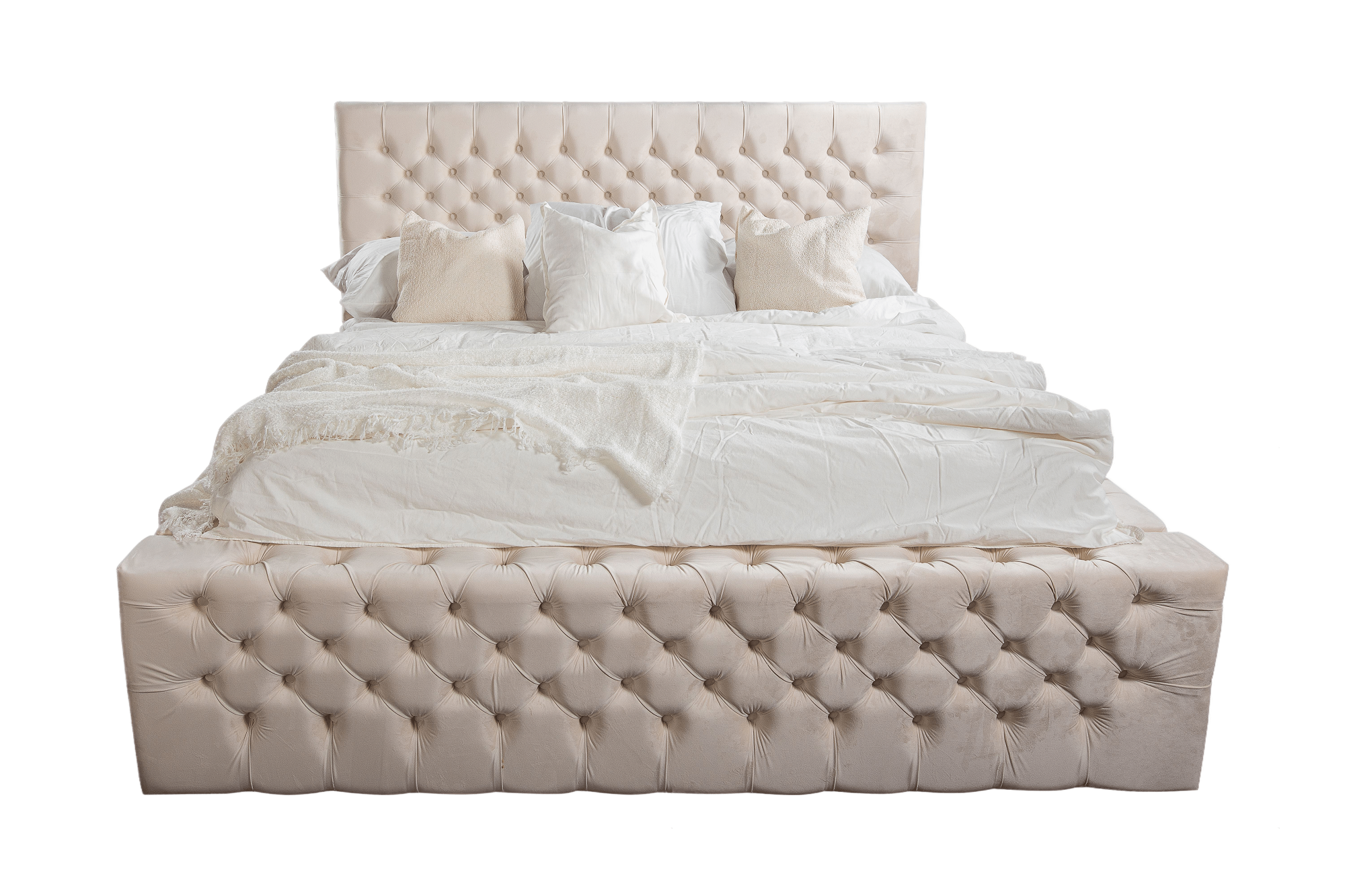 Lit rembourré en tissu, Cadre de lit pliant avec espace de rangement, Chester Lux III Velvet, Crème