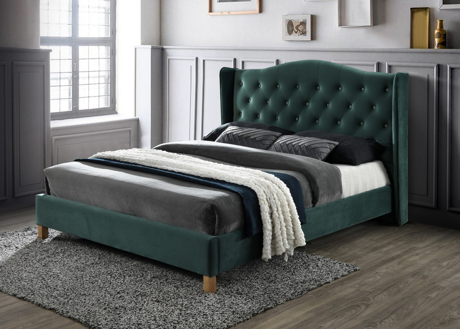 Lit rembourré avec tissu, Kristina Velvet, Vert