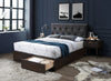 Lit en placage, recouvert de tissu et 2 tiroirs, Diva, Anthracite