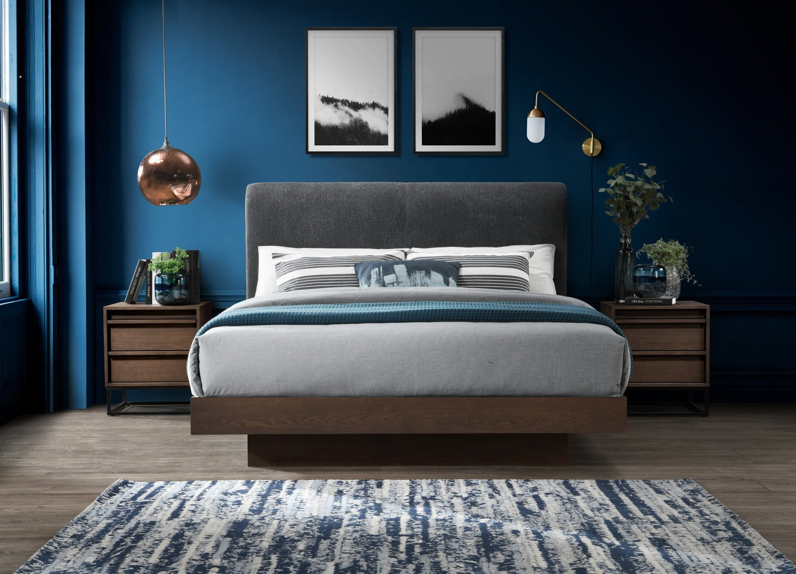 Lit en placage et recouvert de tissu, Kenzou, Gris Foncé