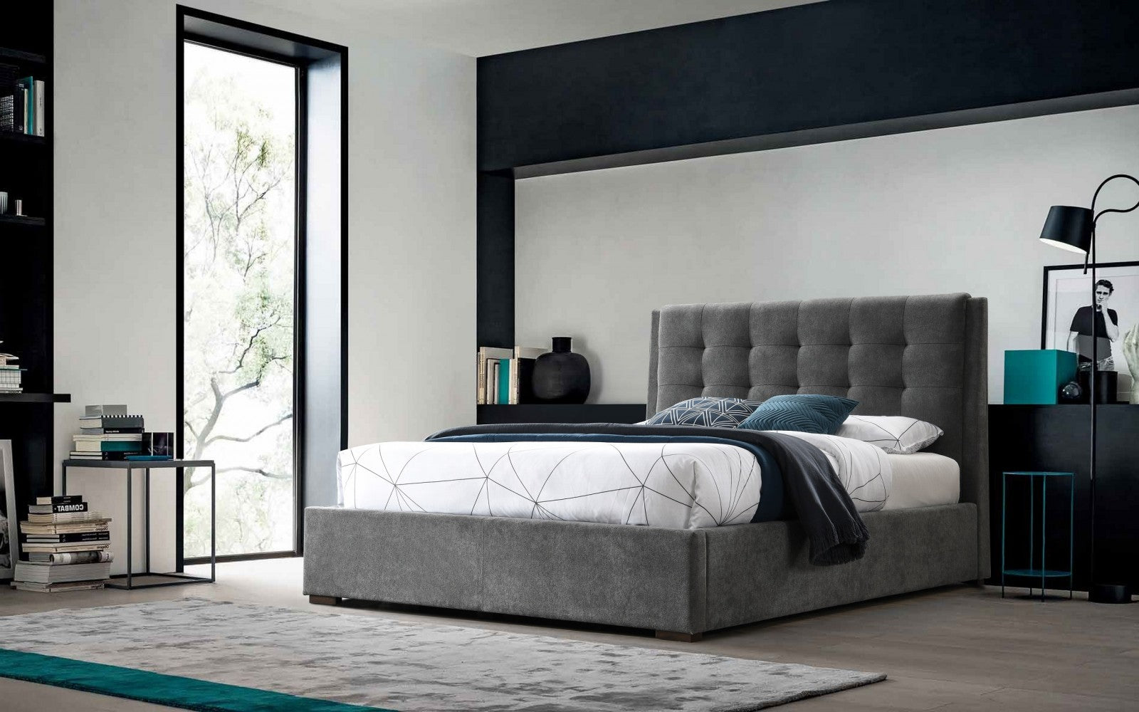 Lit rembourré avec tissu, avec 4 tiroirs Electra, Gris, 180 x 200 cm