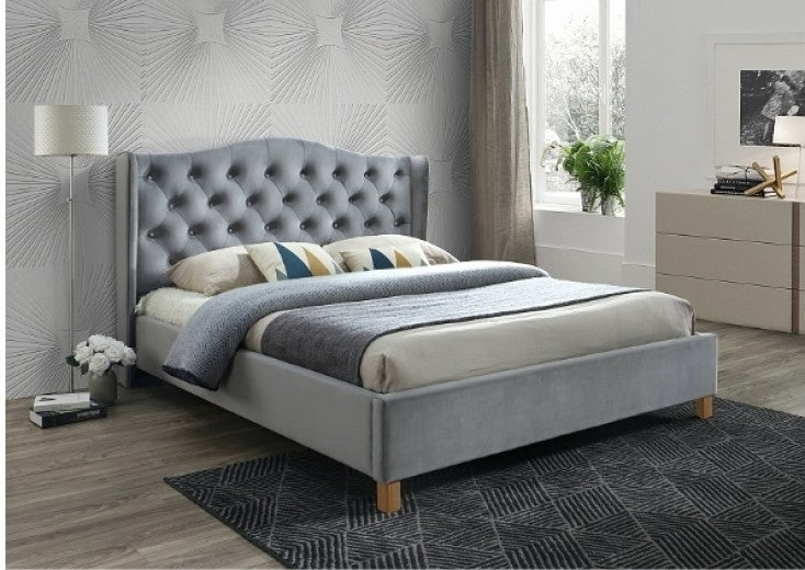 Lit rembourré Aspen Velvet, Gris, 140 x 200 cm