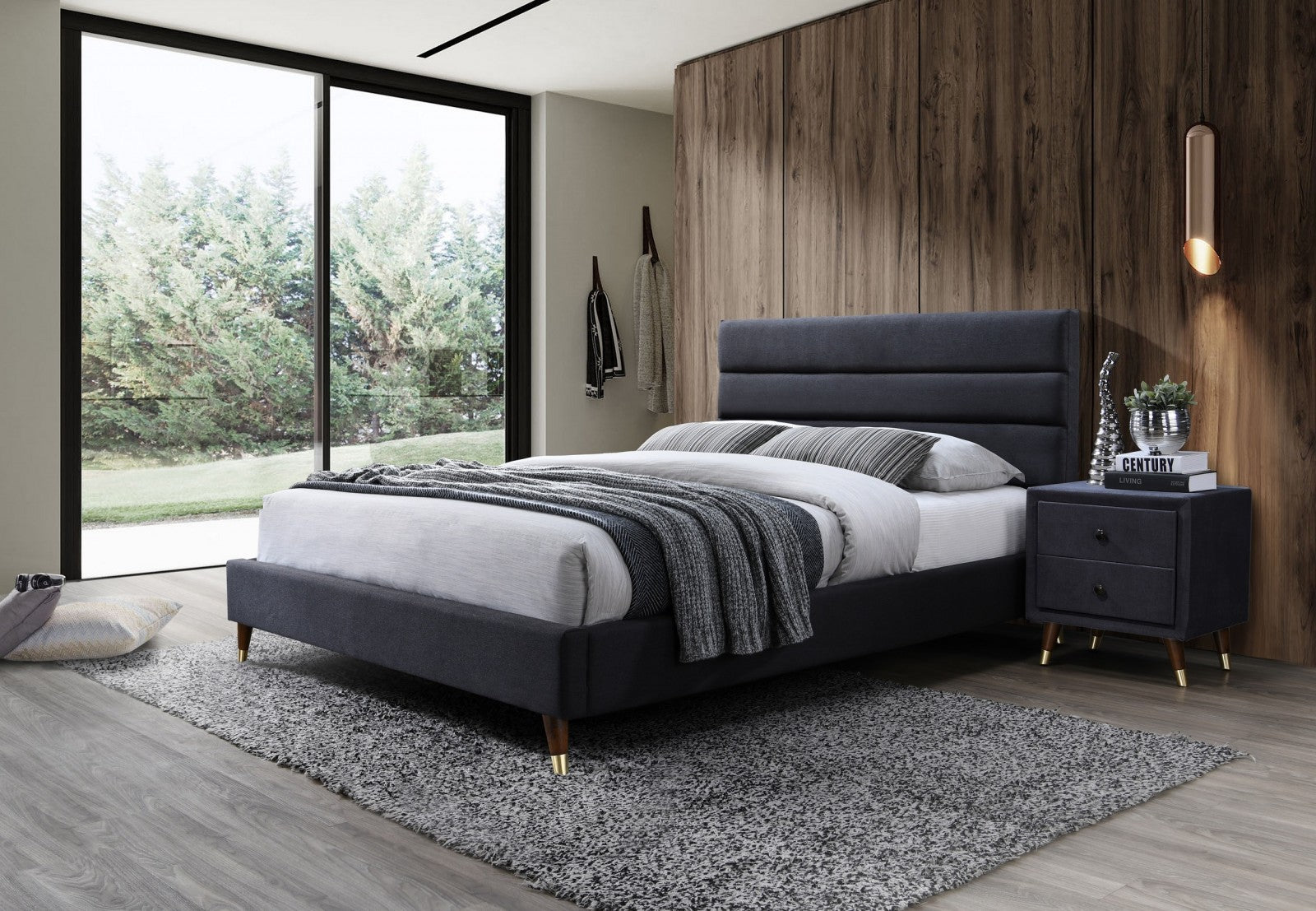 Lit rembourré en tissu, Hayden, Gris Foncé