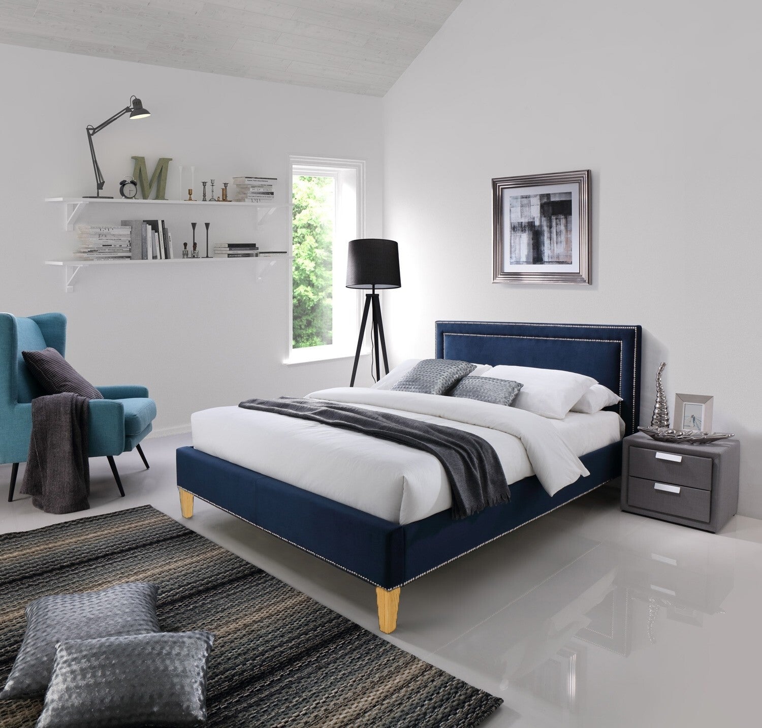 Lit rembourré avec tissu, Alberto Velvet, Navy