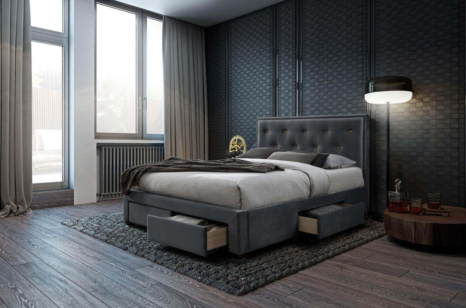 Lit rembourré avec tissu et 4 tiroirs, Glossy Velvet, Gris Foncé
