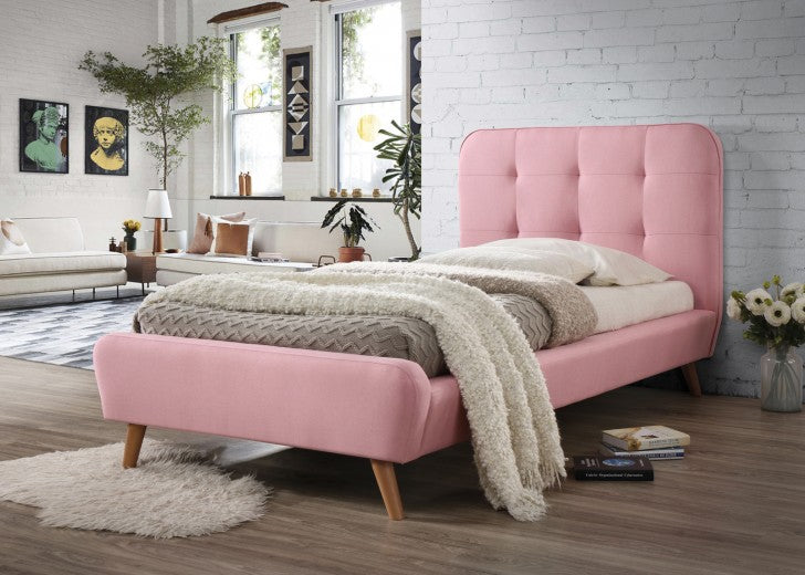 Lit tapissé de tissu Erna, Velours Rose-200 x 140 cm