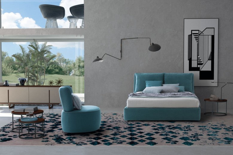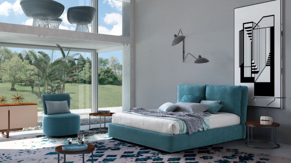 Lit avec matelas pliable et coffre de rangement, recouvert de tissu, Frise Turquoise-200 x 180 cm