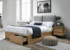 Lit coffre avec boîte de rangement, recouvert de tissu Velvet Gris / Rustic Oak