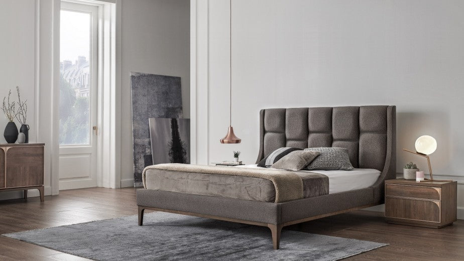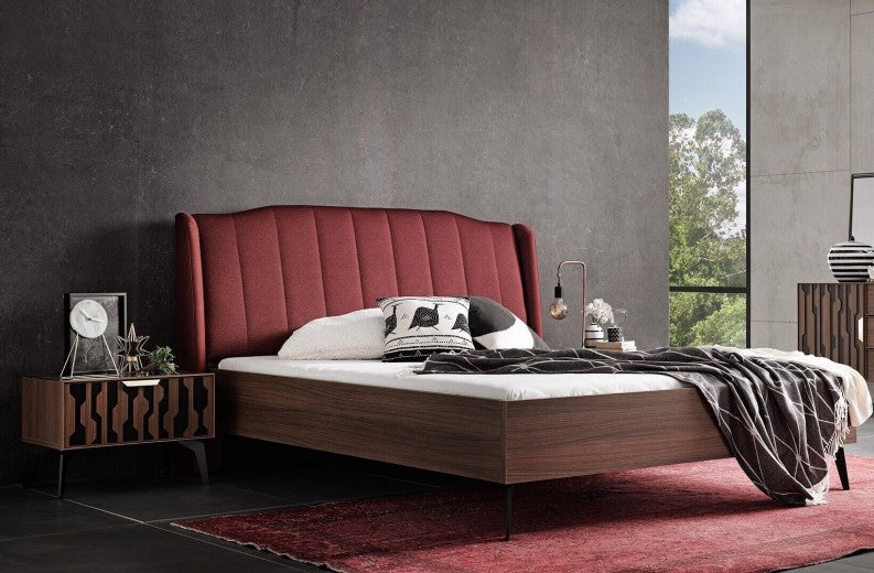 Lit en bois et rembourré avec Louisa Bordeaux / Noyer-200 x 180 cm