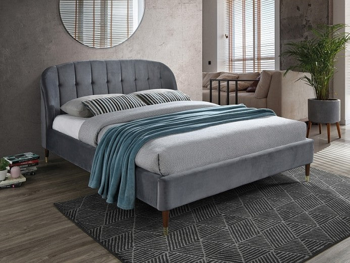 Lit recouvert de tissu Liguria Velvet, Gris, 160 x 200 cm