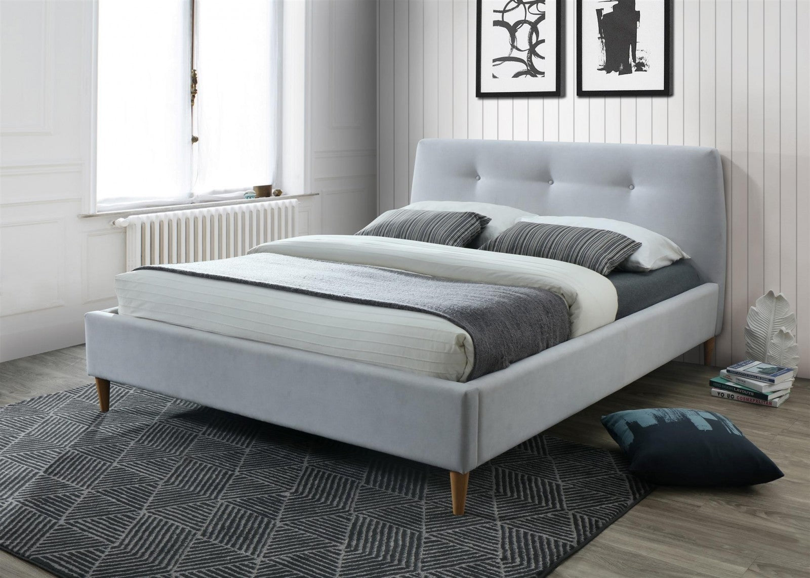 Lit rembourré en tissu, Hamilton, Gris Clair