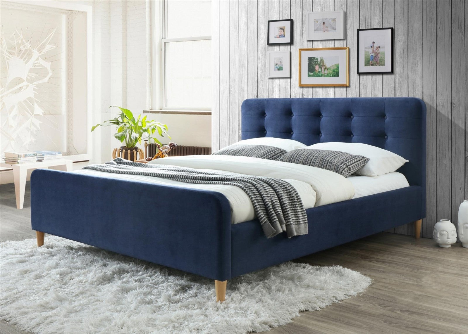 Lit rembourré avec tissu, Jolie, Bleu