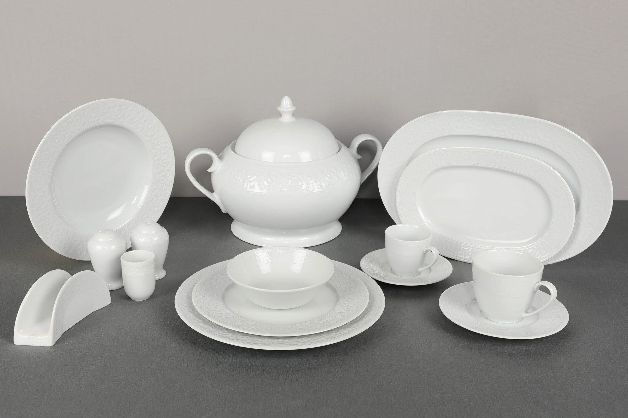 Service de table en porcelaine, Dion Dinner, Blanc, 83 pièces