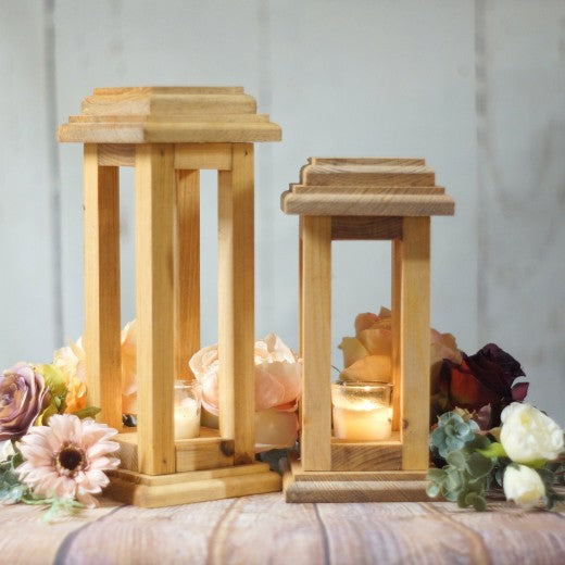 Lot de 2 bougeoirs Merry 107 en bois, l12xA12xH30 / l12xA12xH25 cm