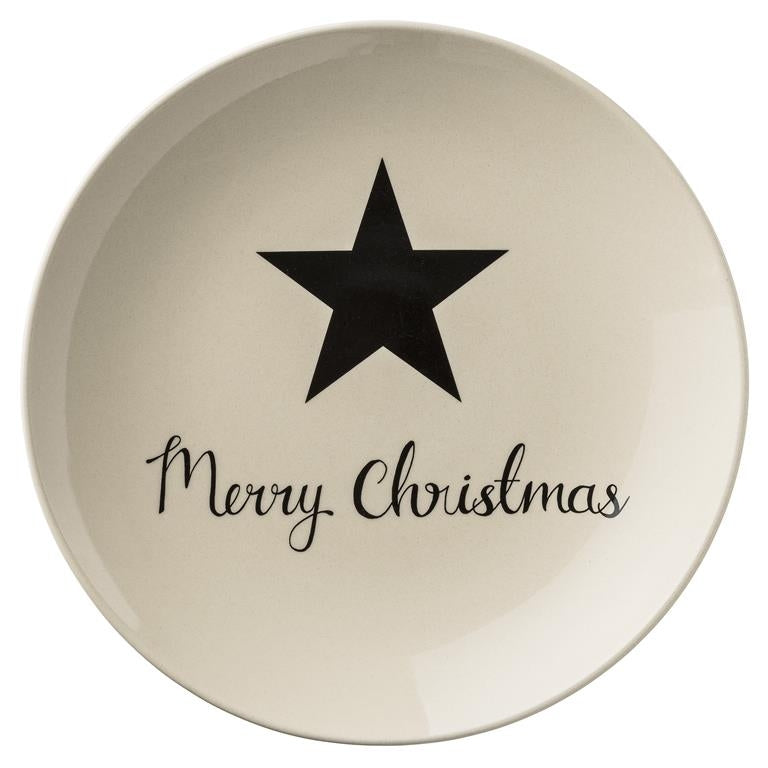 Assiette en céramique, Étoile Joyeux Noël Ivoire / Noir, Ø25 cm