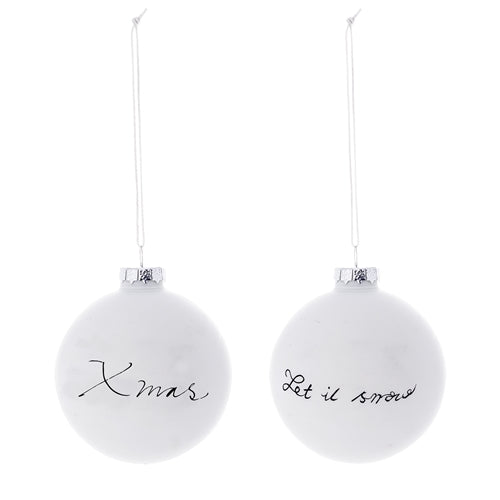 Lot de 2 globes pour sapin de Noël... Let it snow, Blanc/Noir, Verre, Ø6 cm
