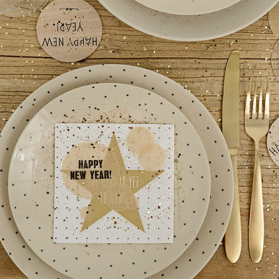 Pack de serviettes Happy New Year Blanc / Noir, 33 x 33 cm, 20 pièces