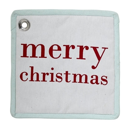 Gant de cuisine en coton, Merry... Blanc / Menthe / Rouge, L30x18 cm