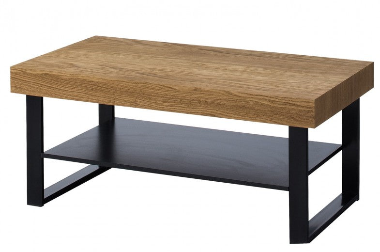 Table basse bois, placage et métal Mosaic 41 Chêne / Noir, L110xl60xH48 cm