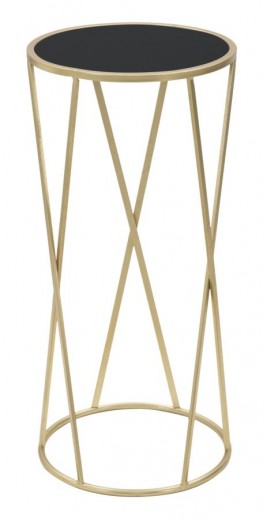 Table support téléphone en verre et métal Glam Simple Or / Noir, Ø35xH75 cm