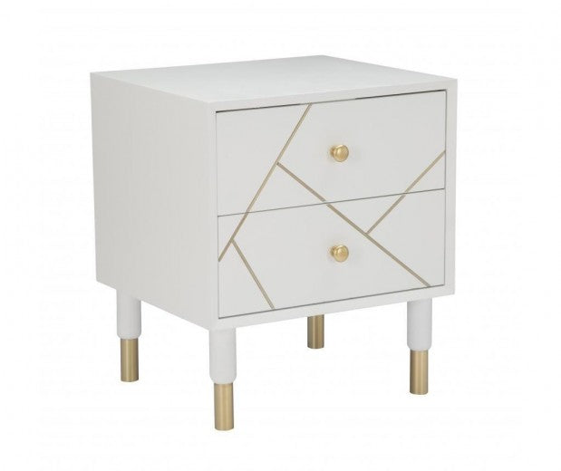 Table de chevet en MDF et métal, avec 2 tiroirs Luxy Blanc/Or, l45xA40xH51 cm