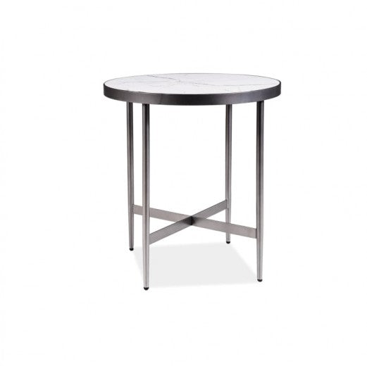 Table basse, en MDF, placage et métal Dolores C Blanc / Gris, Ø50xH55 cm