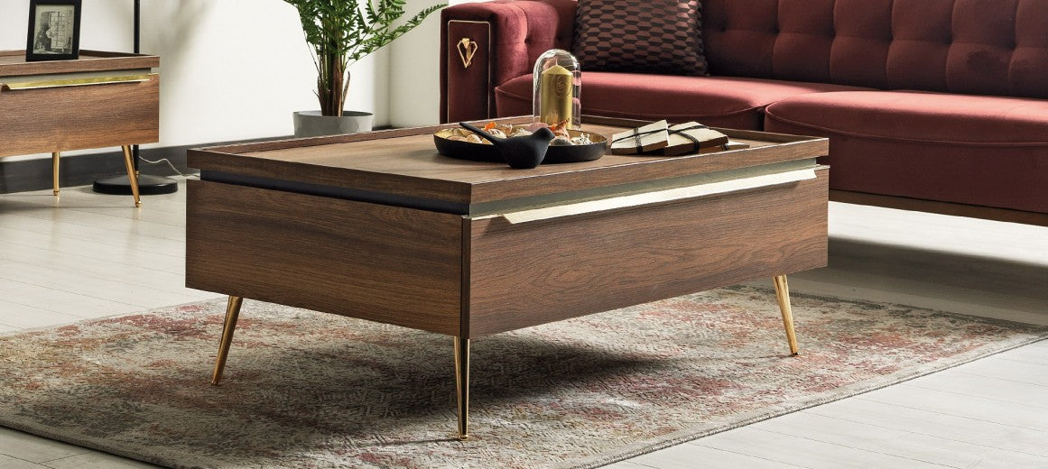 Table basse en aggloméré et métal Pietro Nuc / Doré, L120xl70xH47 cm