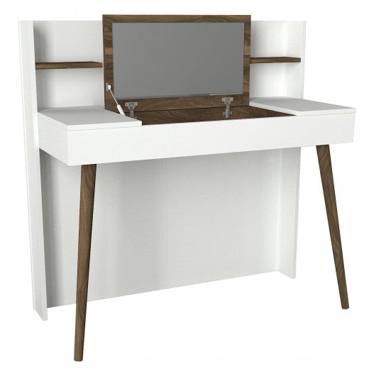 Table de maquillage palette avec miroir, Retro Walnut / Blanc, L116xl52xH120 cm