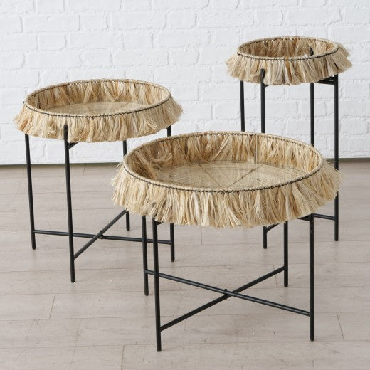 Set de 3 tables basses en verre, bambou et métal Banjar Noir / Naturel, Ø57xH48 / Ø47xH54 / Ø33xH65 cm