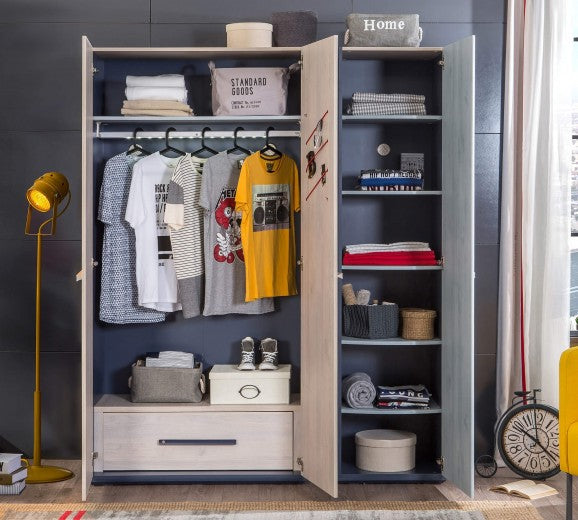 Armoire à palettes avec 1 porte pour les jeunes, garçons 12-24 ans, Trio Blue, combine harmonieusement esthétique, fonctionnalité et durabilité.