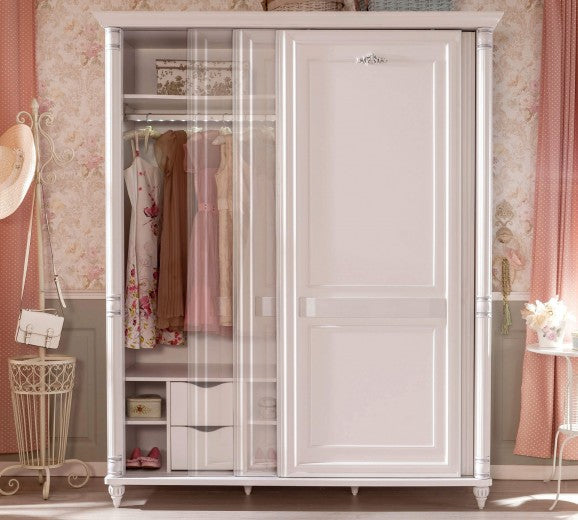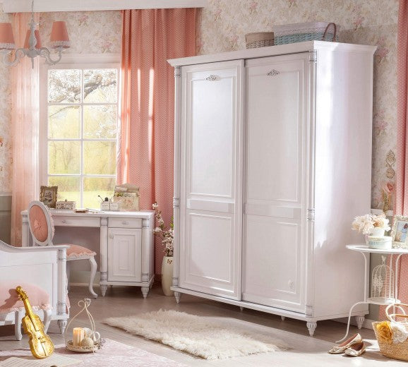 Dulapul din pal cu 2 usi glisante pentru copii si tineret Romantic reprezinta o piesa de mobilier usor de integrat in interiorul locuintei.