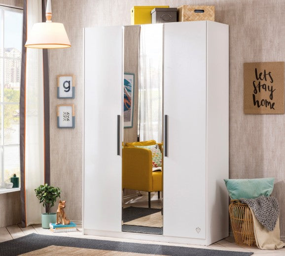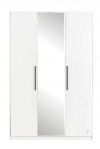 Armoire à palettes avec 3 portes et miroir, pour jeune blanc, l135xA54xH209 cm